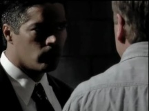 Jacks Gesicht, doch er hat sich schnell wieder im Griff. Ramirez konfrontiert Jack mit der Tatsache, dass ihm während seiner Gefangenschaft über Wochen, vielleicht sogar Monate, psychoaktive Drogen injiziert worden sind. Er will von Jack wissen, ob er dies etwa abstreiten will. Jack wendet den Blick, von Erinnerungen überwältigt, von Ramirez ab und verneint dies mit rauer Stimme. Ramirez erklärt Jack, dass Cheng ihnen eine Liste der Drogen gegeben hat, die dabei verwendet wurden. Eine davon ist dafür bekannt, dass sie das Verhalten enthemmt und tiefgreifende Gedächtnislücken verursachen kann. Selbst wenn Jack Holt verraten hat, wäre es also möglich, dass er sich einfach nicht daran erinnern kann. Jack weiß sehr wohl, welche Auswirkungen die Droge hat, aber er ist trotzdem davon überzeugt, nichts gesagt zu haben. 22.37 Uhr: Da Jack von seiner Aussage nicht abrückt, soll Burke ihm eine Substanz injizieren, die ihm dabei helfen soll, sich zu erinnern. Doch dazu kommt es nicht, denn Jack hat sich, mit dem Schlüssel, den Agent Ryan ihm in die Hand gedrückt hatte, längst befreit. Blitzschnell nimmt er Burke in einen Würgegriff, als dieser die Spritze ansetzen will. Ramirez, Ryan und die anderen Agenten ziehen sofort ihre Waffen, doch Jack droht ihnen, Burke das Genick zu brechen, sollte auch nur einer daran denken zu schießen. Ramirez versucht Jack zu beruhigen, doch dieser hat nur ein Ziel vor Augen: das man ihm endlich glaubt. Er kannte Marcus Holt seit Jahren, sie waren Freunde und Partner. Falls Ramirez, oder seine Kollegen, wirklich glauben, er hätte auch nur eine Sekunde von dem vergessen, was in China geschehen ist, dann können sie ihn gerne erschießen. Mit diesen Worten stößt er Burke beiseite und breitet die Arme aus. Sie können machen was sie wollen, er ist aber auf keinen Fall bereit zu akzeptieren, dass man ihn für den Tod von Marcus Holt verantwortlich machen will. Als er die Agenten ein weiteres Mal anbrüllt und sie auffordert zu schießen, gibt Ramirez den Befehl die Waffen zu senken. Die Verzweiflung in Jacks Stimme scheint ihn, im Gegensatz zu Burke, überzeugt zu haben, denn er teilt Jack schließlich mit, dass er gehen kann. Jack zögert nicht, doch dicht vor Ramirez bleibt er kurz stehen. Er warnt ihn und gibt ihm den Rat, zu Gott zu beten, sollten sie sich jemals wieder begegnen, denn dann, würde er ihn töten. Mit diesen Worten lässt Jack Ramirez stehen und verlässt den Raum. |