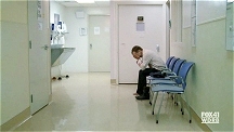 er auf einem Stuhl im Korridor vor dem OP, als plötzlich